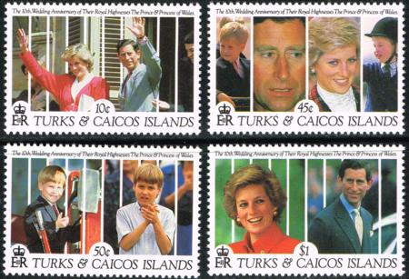 | Turks & Caicos Islands. 1991. 10th Wedding Anniversary. UHM set of four. SG 1113/1116.