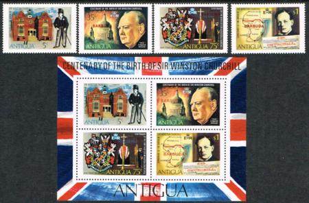 | Antigua & Barbuda. 1974 Churchill. UHM set of four plus mini-sheet. SG 408/412.