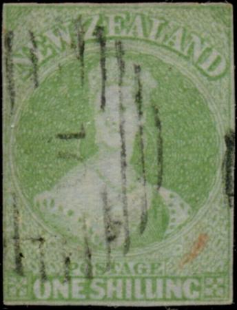 | FFQ Chalon. 1/- Richardson on deep blue paper. Fine used. Four close margins. Seven fine pin holes. SG 6. Catalogue value $10,000 +GST.
