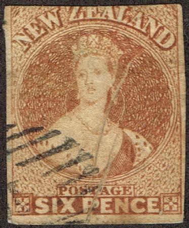 | FFQ Chalon. Imperf 6d pale brown (Richardson white paper). Used (face clear). Three margins. Pre-printing creasing. SG 14.