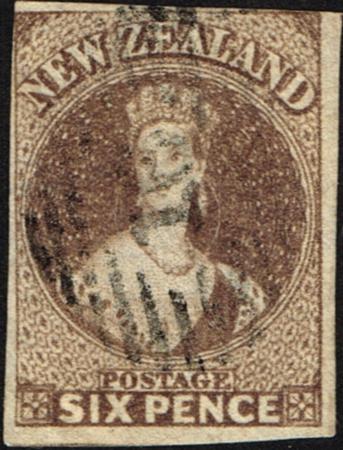 | FFQ Chalon. 6d brown, Davies print. Used. Four margins. SG 42.