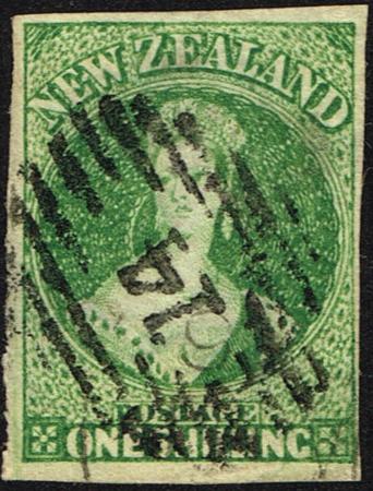 | FFQ Chalon. 1/- 'NZ' wmk. Used. Four margins (three are large). Hinge thin. SG 100. Catalogue $1,000 +GST.