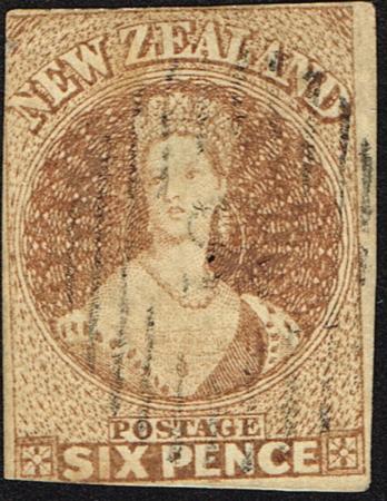 | FFQ Chalon. 6d (no wmk. Vert mesh) pale brown. Lightly used. Four margins (toching in two spots. SG 14. |