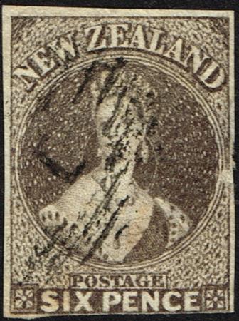 | FFQ Chalon. 6d black-brown. Davies print. Used ('1' in bars). Three margins (one with surface fault). Small back thin. SG 41. Catalogue value $450.
