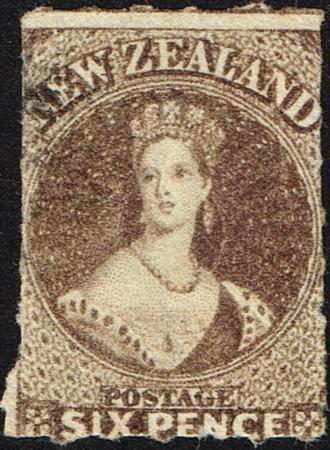 | FFQ Chalon. Imperf 6d black-brown. Roulette 7 (three sides). Fine used. Small fault under 'S' of 'Six'. SG 53. Catalogue value $1,500 +GST.