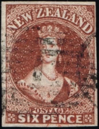 | FFQ Chalon. 6d deep red-brown imperf. Used. Four large margins. SG 43. |