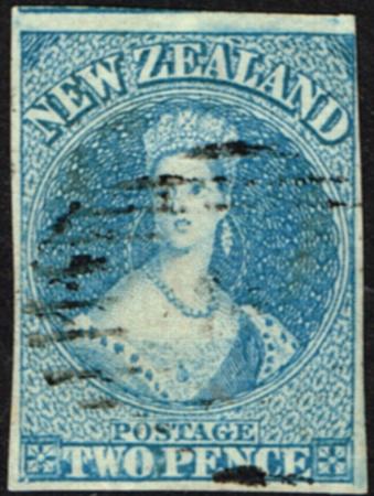 | FFQ Chalon. 2d blue (Richardson no wmk HM white paper). Fine used (face partly clear). Four good margins. SG 10. |