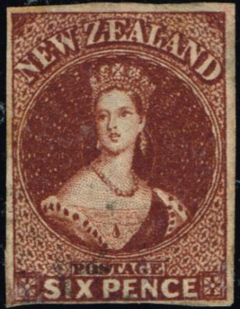 | FFQ Chalon. Imperf 6d deep red-brown. Very fine used. Four good margins (close in one part). Light tone on back. SG 43. Catalogue value $375.