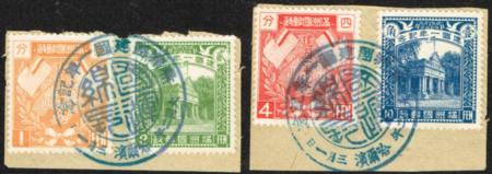 | China. Manchukuo. 1933 First Republic set of four used on piece. SG 19/22 |