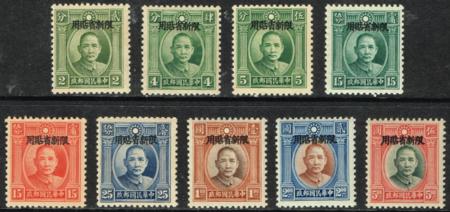 | China. Chinese Provinces - Sinkiang. 1932 Dr Sun Yat-sen. Thick circle emblems. Peking overprint. UHM set of nine. SG 102/110. Catalogue value £120.