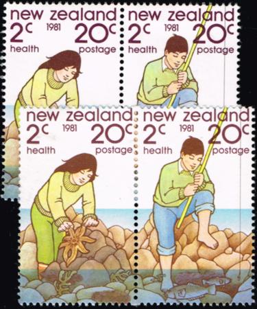 | Health. 1981 20¢. UHM se-tenant pair, one with the dark brown shade (hair and text) much lighter. With normal pair.