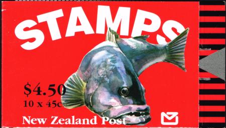 1993 $4.50 NZ Fish booklet. Fine used. CP W42b, SG SB65. |