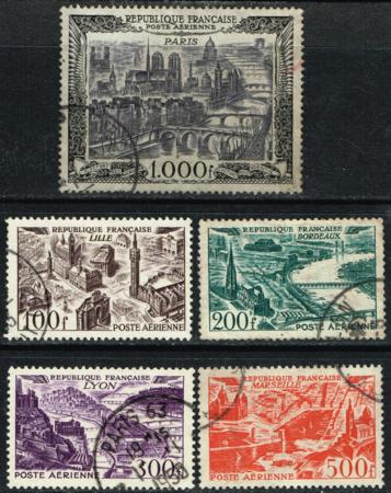 | France. 1949 Air. Various in set of five. Used. 1000f has red mark on right hand side. SG 1055/1059. |