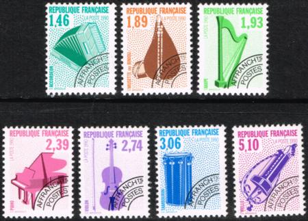 | France. 1990 Musical Instruments (Series 2). UHM set of seven pre-cancelled. SG 2993/2999. |
