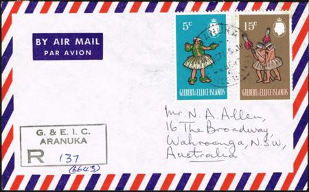 | Gilbert & Ellice Islands. Registered cover posted Aranuka (22 AUG 1971) to Australia.