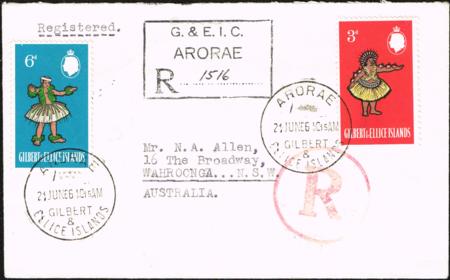 | Gilbert & Ellice Islands. Registered cover posted Arorae (21 June 1966) to Australia.