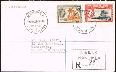 | Gilbert & Ellice Islands. Registered cover posted Nanumea (21 Aug 1965) to Australia.
