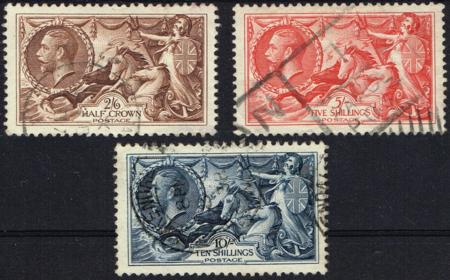 | Great Britain. 1934 Seahorses. Used set of three. SG 450/452. Catalogue value £575.
