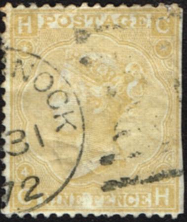 | Great Britain. 1867 9d. Fine used (1872). Right hand perfs trimmed. SG 111. Catalogue value (with perfs on four sides) £250.