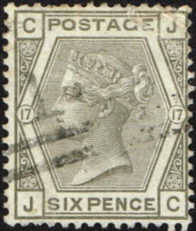 | Great Britain. 1881 6d (CJ/JC) Fine used. Plate 17. Well centred. Surface scuff in top right corner. SG 161. Catalogue value £65.
