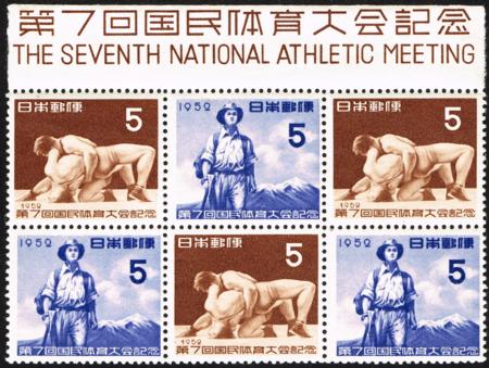 | Japan. 1952 National Athletic Meeting. UHM block of six (LH in selvedge). SG 688a.