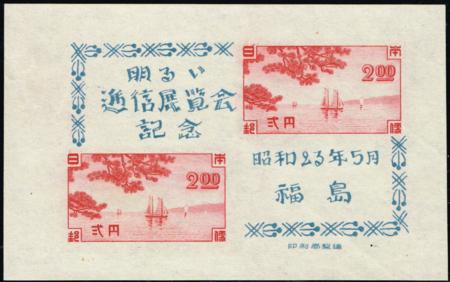 | Japan. 1948 Fukushima Communications Exhibition mini-sheet. Unused. SG MS479. |