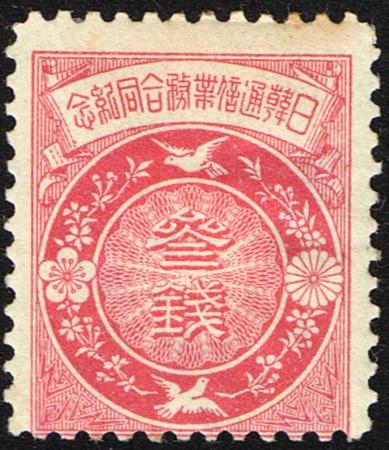 | Japan. 1905 3s Symbols. Perf 12. Mint (heavy hinge). Faint tone spot and Centred low. SG 153. Catalogue value £130.