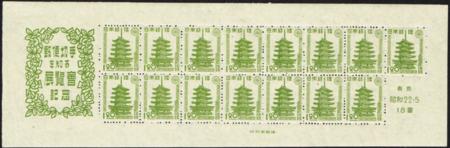 | Japan. 1947 'Know Your Stamps Exhibition' sheet of 15. UHM. SG MS454.