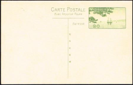 | Japan. 1959 20¥ + 20¥ unused reply card. Both sections still attached. Very fine condition. H&G 129. |