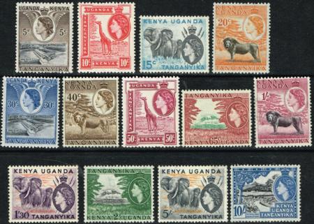| Kenya, Uganda and Tanganyika. 1954 QEII set less the £1 value. UHM/LHM. Includes some spares. SG 167/179.