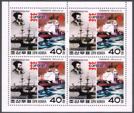 | North Korea. 1987 Jacques Cartier stamp for Capex '87. Block of four in mini-sheet. UHM. SG N2700. |