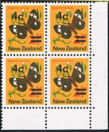 | 1970 4¢ London letterpress overprint. UHM block of four with the Row 10/20 flaw (very scarce as it was retouched soon after being noticed). Scarce. CP P30b(Prov.4a), CP 957c.