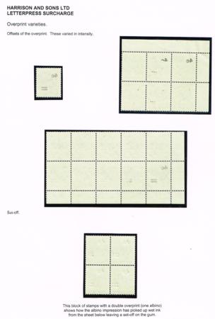 | 4¢ London Letterpress overprint. One page from a medal winning collection with three examples of offsets plus one block of four with a set-off from being a double overprint (one albino). |