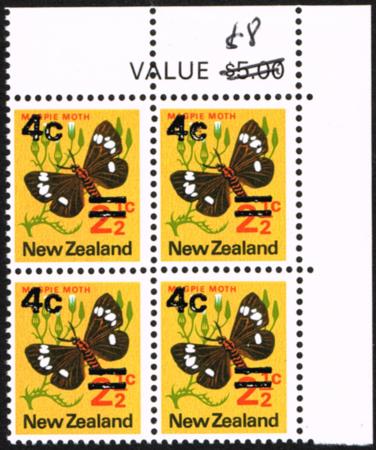 | 4¢ Local Letterpress overprint. UHM value block of four (altered sheet value) showing the effect of the increased overprint pressure on the right hand column. |