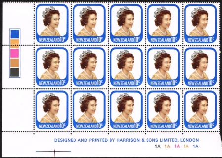 | 1975 10¢ QEII. UHM Plate block (1A1A1A1A1A) of fifteen. UHM. Left centred. CP PA10a.