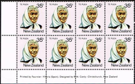 | 1980 Maori Portraits. 35¢ plate block of eight (long imprint). UHM. CP PA27a. |