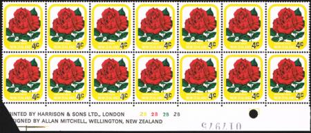 | 1979 4¢ Rose Provisional. UHM plate block of 14 with double overprint (one albino). The albino impression is the strongest we have seen (probably the best available). CP PA30a(Z). Catalogue value $4,900 +GST.