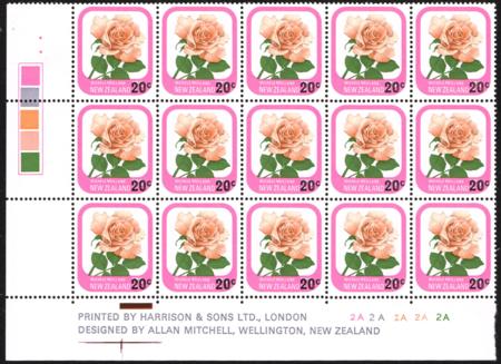 | 1980 20¢ Rose Provisional. UHM plate block of 15 (2A2A2A2A2A) with two dots. CP PA33a, SG 1203b. |