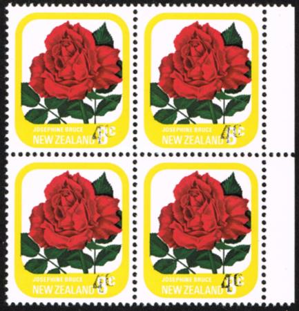 | 1979 4¢ Rose Provisional. UHM block of four with badly printed overprint. Only parts appear. CP PA30a, SG 1201.
