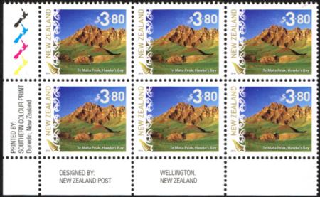 | 2016 $3.80 Te Mata Peak. UHM plate block of six. CP PE150a. |