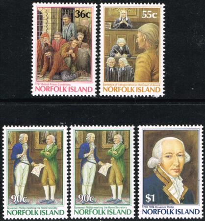 | Norfolk Island. 1986 Settlement Bi-Cent (1st Issue). UHM set of five. SG 396/400. |