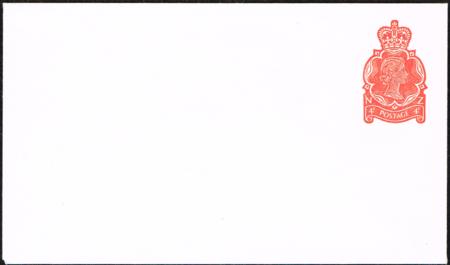 | QEII Stationery Envelope. 4¢ with the thinner lines on the back. Unused. Samuel CF.17a. |