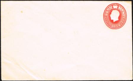 | KGV Stationery Envelope. Samuel CD.7a. Unused. Stain in top right corner plus tone spot near top left. Buckle in lower left. |