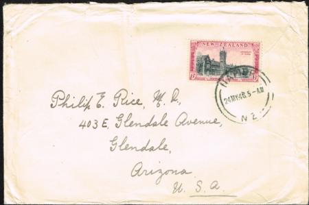| 1948 6d Otago Centennial on triple rate cover to USA (24 May 1948).