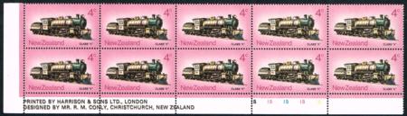 | 1973 4¢ Train. LHM plate block of ten with double print of the black. |