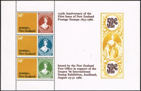 | 1980 14¢ Anniversaries mini-sheet with double print of the black text. UHM.