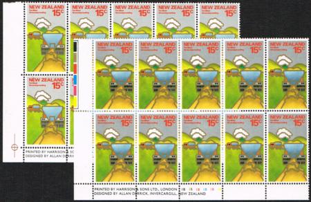 | 1978 15¢ Agriculture. Two UHM plate blocks each with a very different grey (sky) shade.