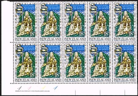 | 1969 18¢ Law Society. UHM plate block (plate 1111) of ten. CP 117, SG 896. |