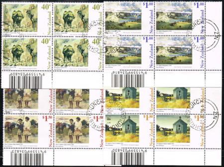 | 1998 NZ Art - Peter McIntyre. Set of four in fine used bar code corner blocks of four. SG 2174/2177.
