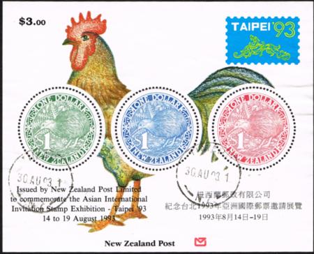 | 1993 $3 'Taipei 93' Stampshow mini-sheet. Fine used. A few light wrinkles. CP PCM15a. |